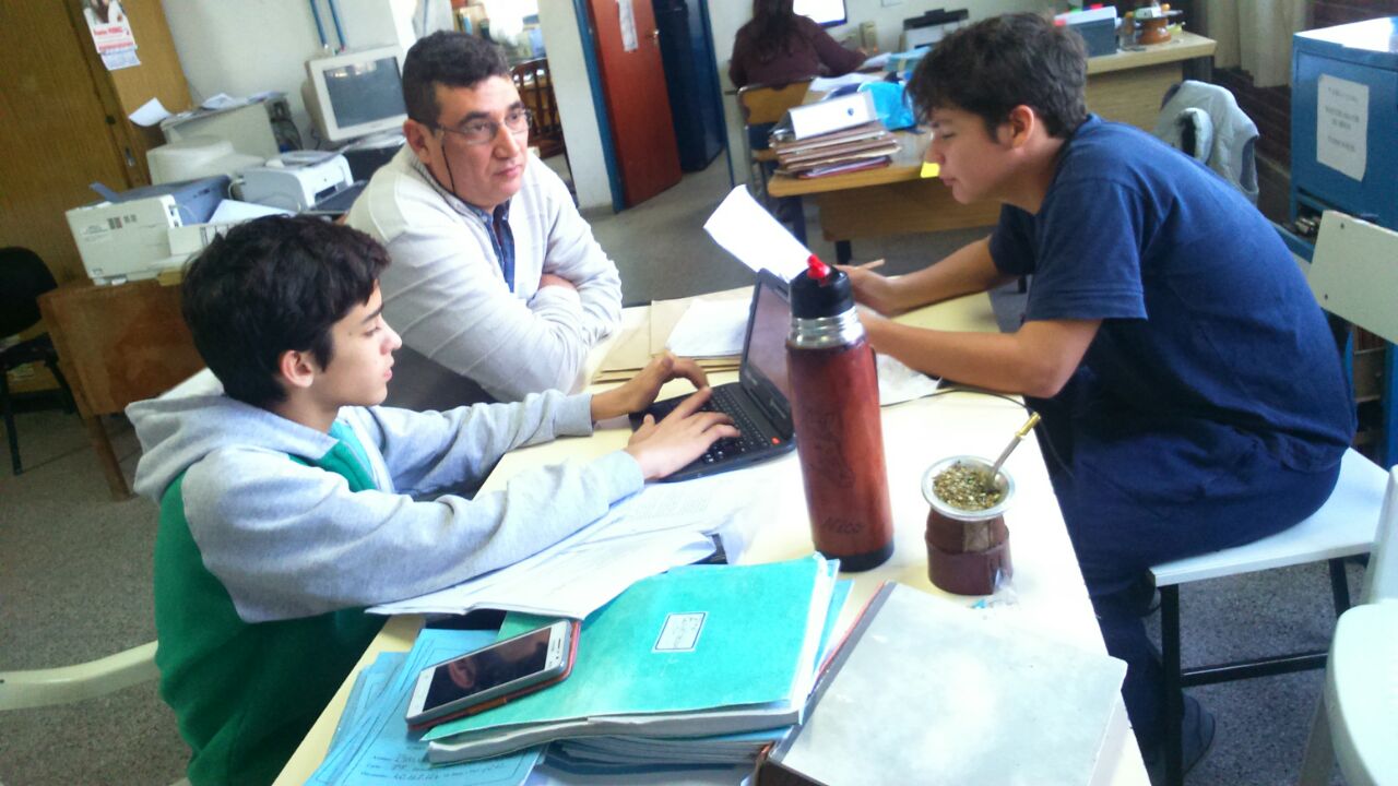 Los concejales de nuestra escuela trabajando en el proyecto de ordenanza para el consejo deliberante juvenil.