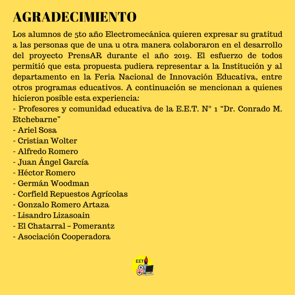 Agradecimiento – 5° Electromecánica