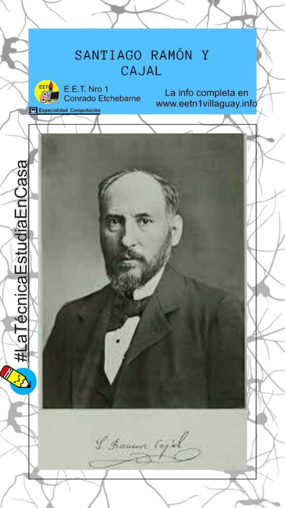 Santiago Ramón y Cajal (Petilla de Aragón, España, 1852 – Madrid, 1934) Histólogo español. En 1869 su familia se trasladó a Zaragoza. En un ambiente familiar dominado por el interés por la medicina, se licenció en esta disciplina en 1873. Fue nombrado ayudante interino de anatomía de la Escuela de Medicina de Zaragoza. Dos años más tarde, en 1877, se doctoró por la Universidad Complutense de Madrid; por esa época, Maestre de San Juan le inició en las técnicas de observación microscópica.