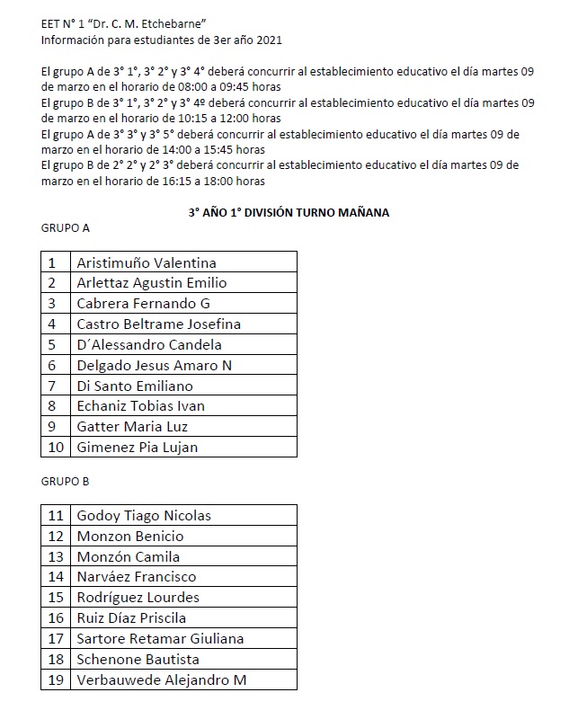 Listados de grupos de 3º Año 2021