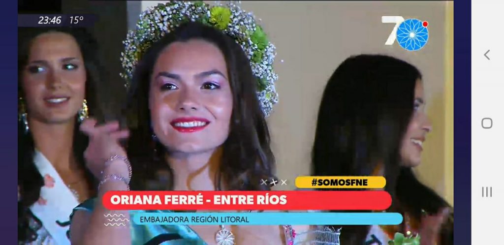 La representante de nuestra provincia, Oriana Ferré, de la ciudad de San Salvador, fue elegida anoche embajadora del Litoral, junto a otras embajadoras de cada región y a la embajadora nacional en la 70° Fiesta Nacional de los Estudiantes Nacionales, en Jujuy.