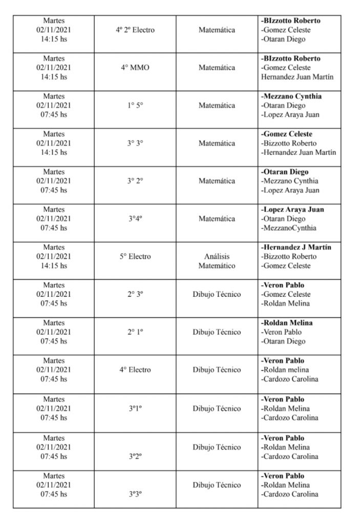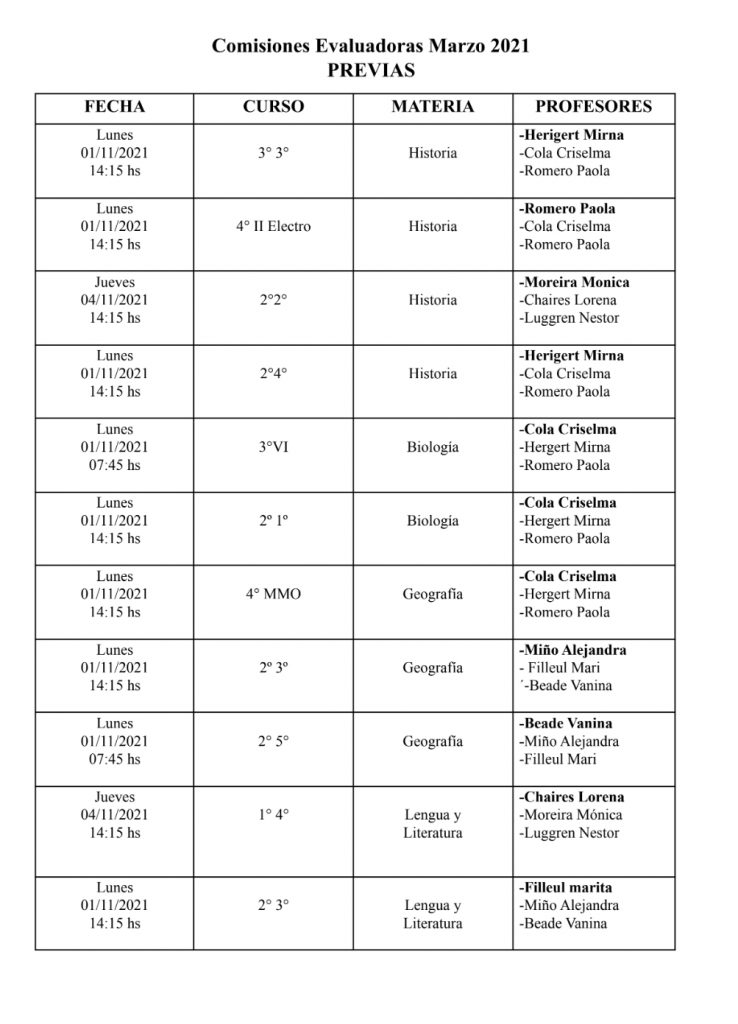 Cronograma Mesas Examinadoras Previas – Noviembre 2021
