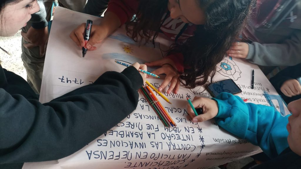 Esta propuesta permitió no solo afianzar el trabajo en equipo, la colaboración, la interdisciplinariedad (ya que fue abordado por todos los docentes a cargo de los grupos), el debate, los acuerdos, las expresiones desde todos los aspectos, sino que permitió que todos y cada uno de los estudiantes fuera protagonista, ya que pasaron de ser espectadores de un acto a participes de una construcción colectiva.