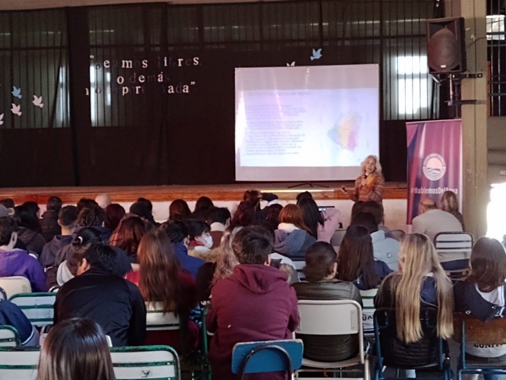 Con el Objetivo de promover acciones de divulgación que propicien acercamiento teórico global y local a fin de impulsar una operación de los servicios de agua y saneamiento desde un enfoque sustentable, eficiente y racional en el marco de la cultura del agua, como derecho humano y con los jóvenes como protagonistas, se llevó a cabo la charla de la que participaron estudiantes de 6to. Y 7mo. Año de las tres especialidades de nuestra institución, alumnos de 6to. Año de la Escuela Secundaria Nro. 10 y docentes.